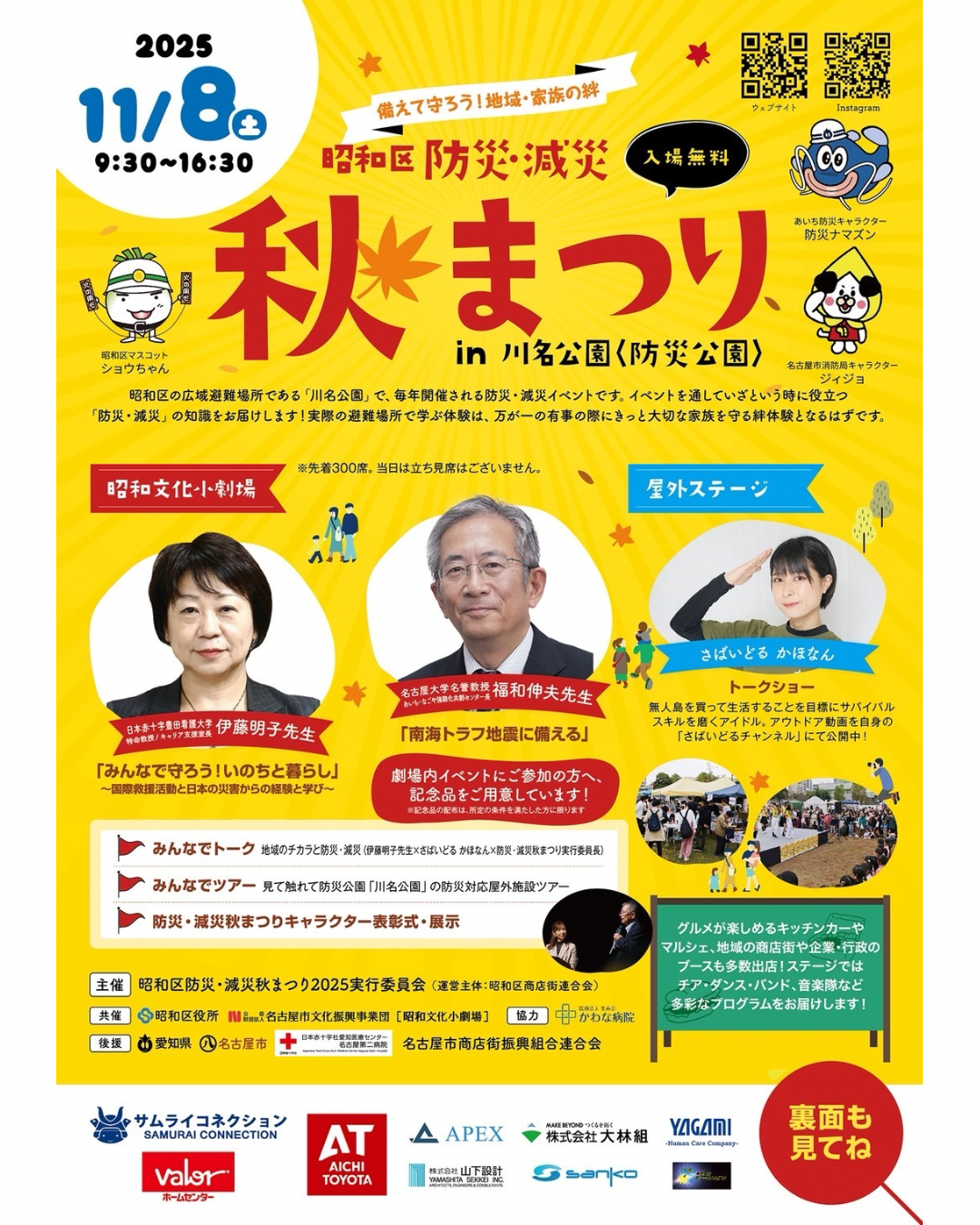 11月8日(土曜日)に川名公園で開催される 昭和区防災•減災秋まつりに icからもブースを出店します。 バ...