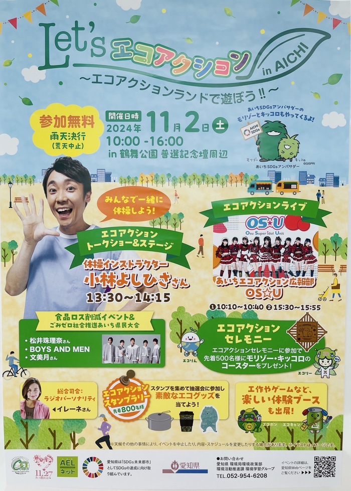 11月2日(土)鶴舞公園にて行われるLet‘sエコアクションinAICHIに出展することになりました! 『エコ』をテーマに様々なブースが出展します! 当店からはSDGsに貢献できる髪の寄付をテーマにブースを出展します! ご予定の合う方がいましたらぜひご来場お待ちしております。