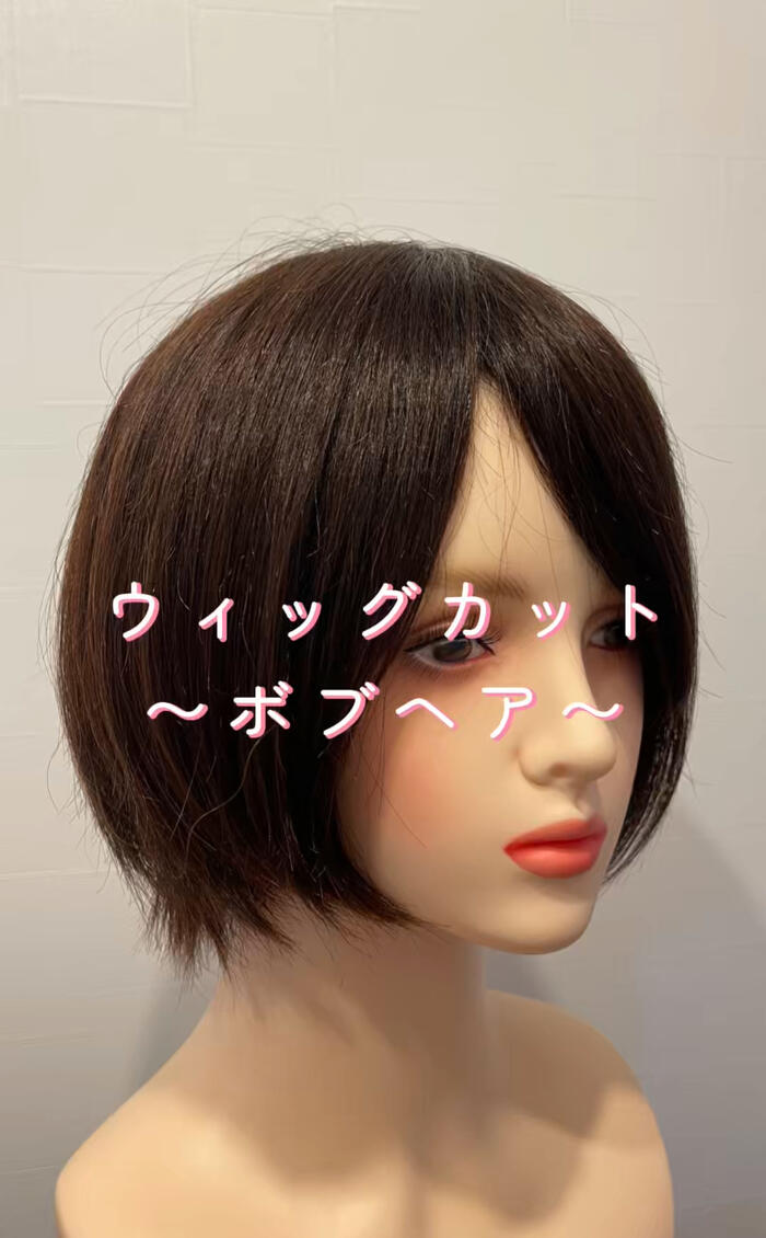 ロングヘアからボブスタイルへ 印象を大きく変えるスタイルチェンジ お客様に合わせて丁寧にカットし、 扱いやすさとデザインになっています 当店購入ウィッグだけでなく、 他店で購入されたウィッグのカットも承っています。