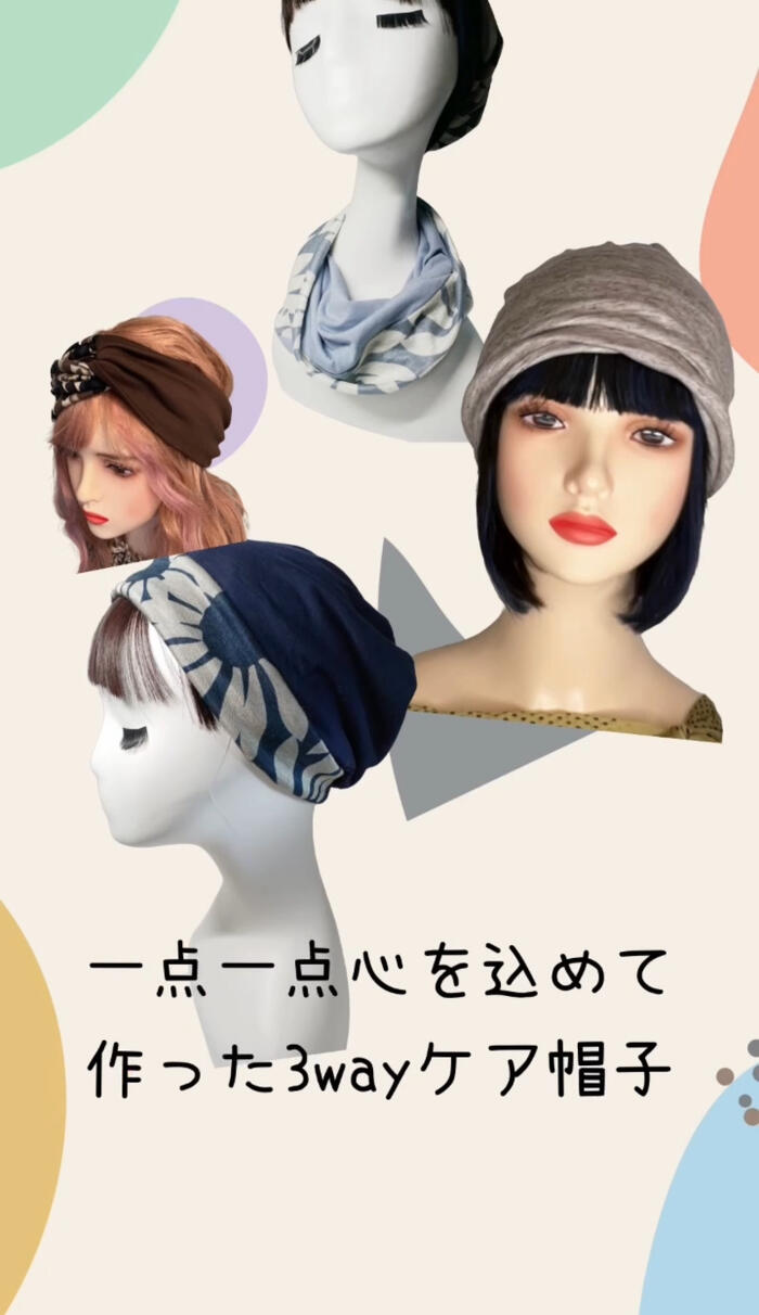 ウィッグの上からも被れて 締めつけ感が少なく快適 外出時にも室内でも活躍します。 3通りの使い方ができるので 気分やシーンに合わせて 手軽にスタイルを変えられます。 お肌にやさしい素材と縫製に こだわっています。